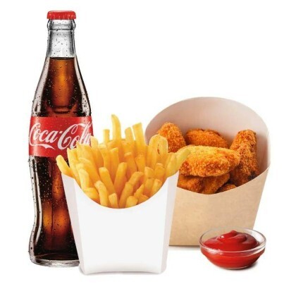 Картофель фри, сырные шарики, кетчуп, напиток